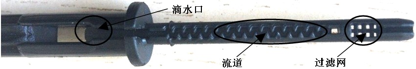 3.滴箭柄部长约5cm,设有精细迷宫流道,插入内径4mm左右的软管中。